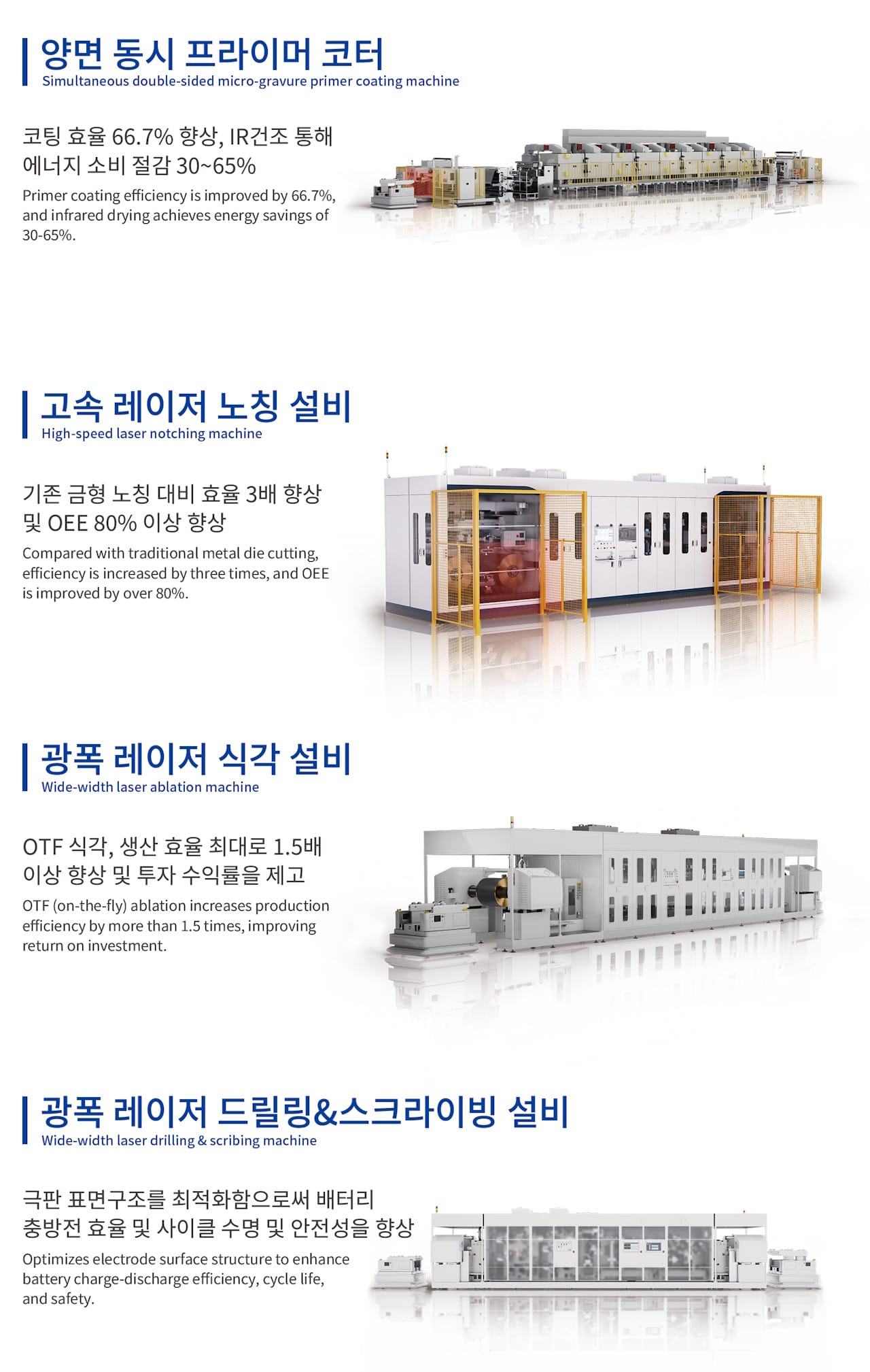 광폭 레이저 식각 설비: on-the-fly식각 기술을 채택하여 생산 효율을 최대 1.5배 이상 높임으로써 고객사의 투자 수익률을 획기적으로 개선합니다.